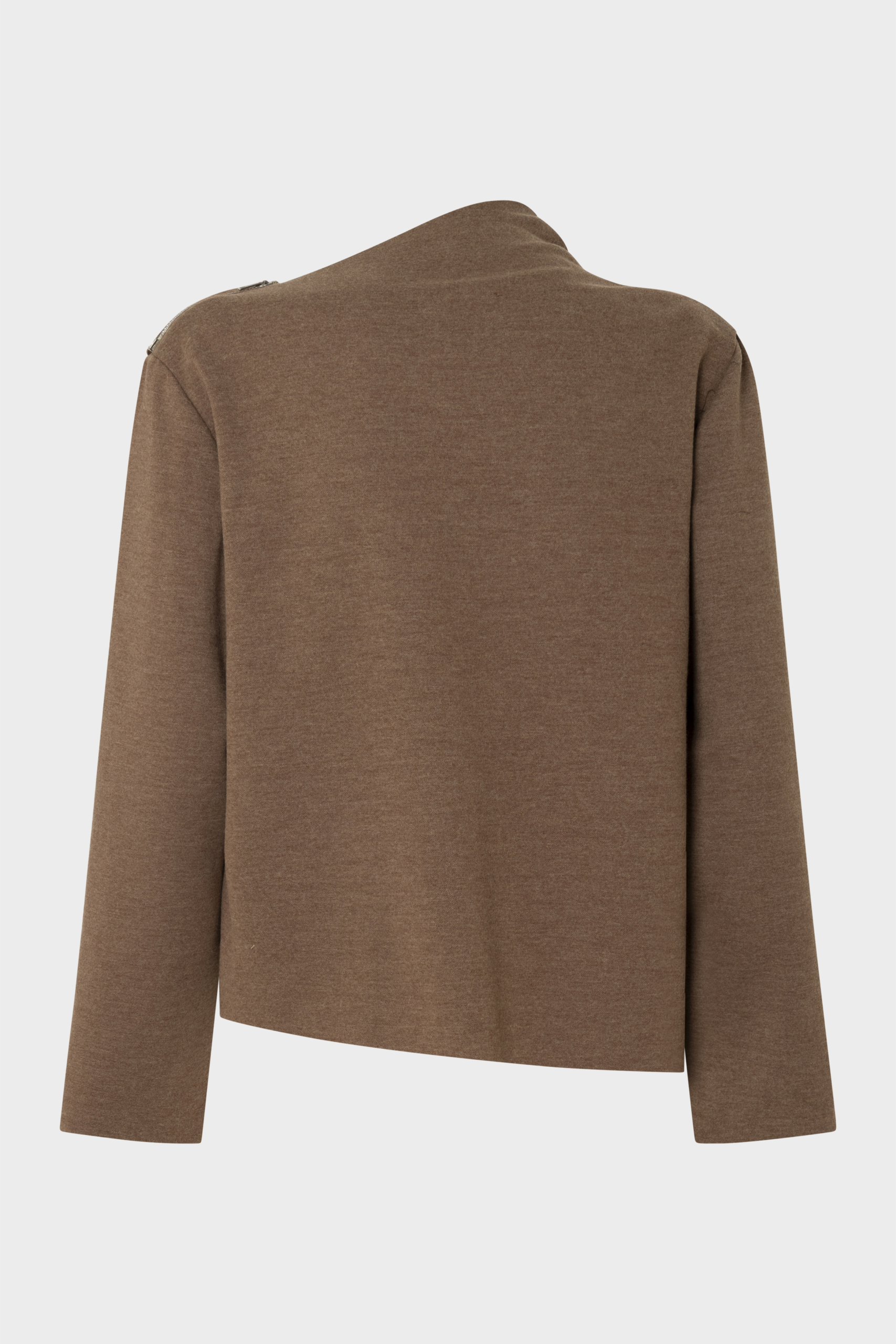 A softly draped top with exposed hem detailing and a subtle shoulder zipper for modern ease.